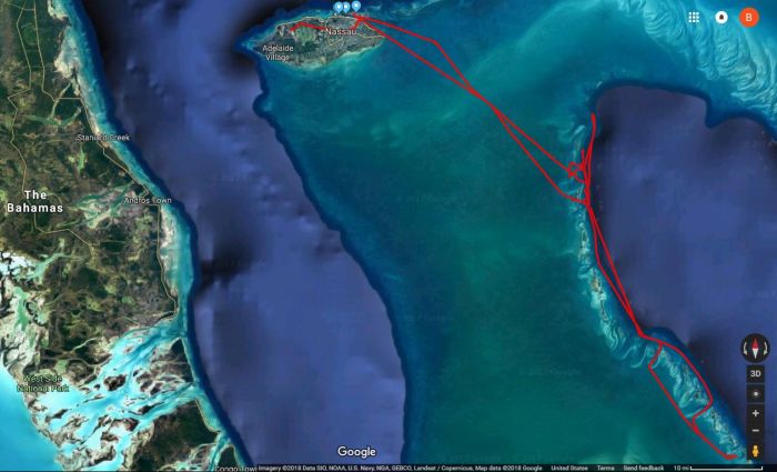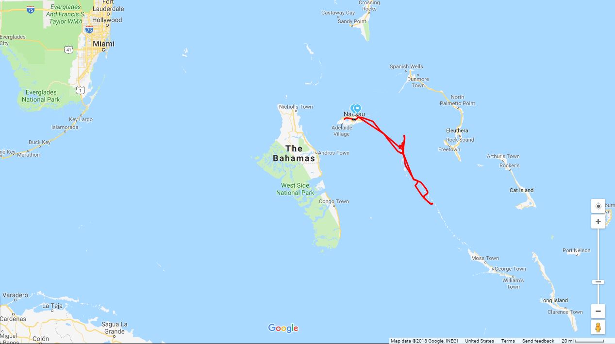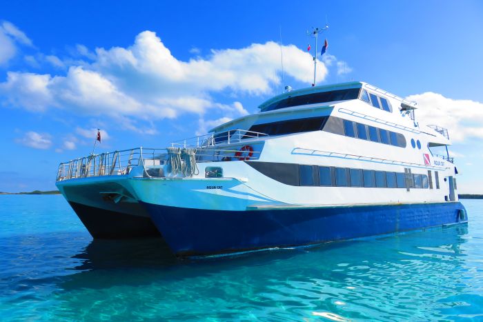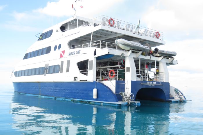 I went on a SCUBA trip to the Bahamas from December 30th, 2017 through January 6th, 2018. This was a Live-A-Board cruise. There were 23 of us divers, plus 10 crew members including kitchen staff. The boat was the Aqua Cat, a 102 foot catamaran specificaly designed for diving. There was a 28 foot jet boat that was towed behind, for excursions and safety.