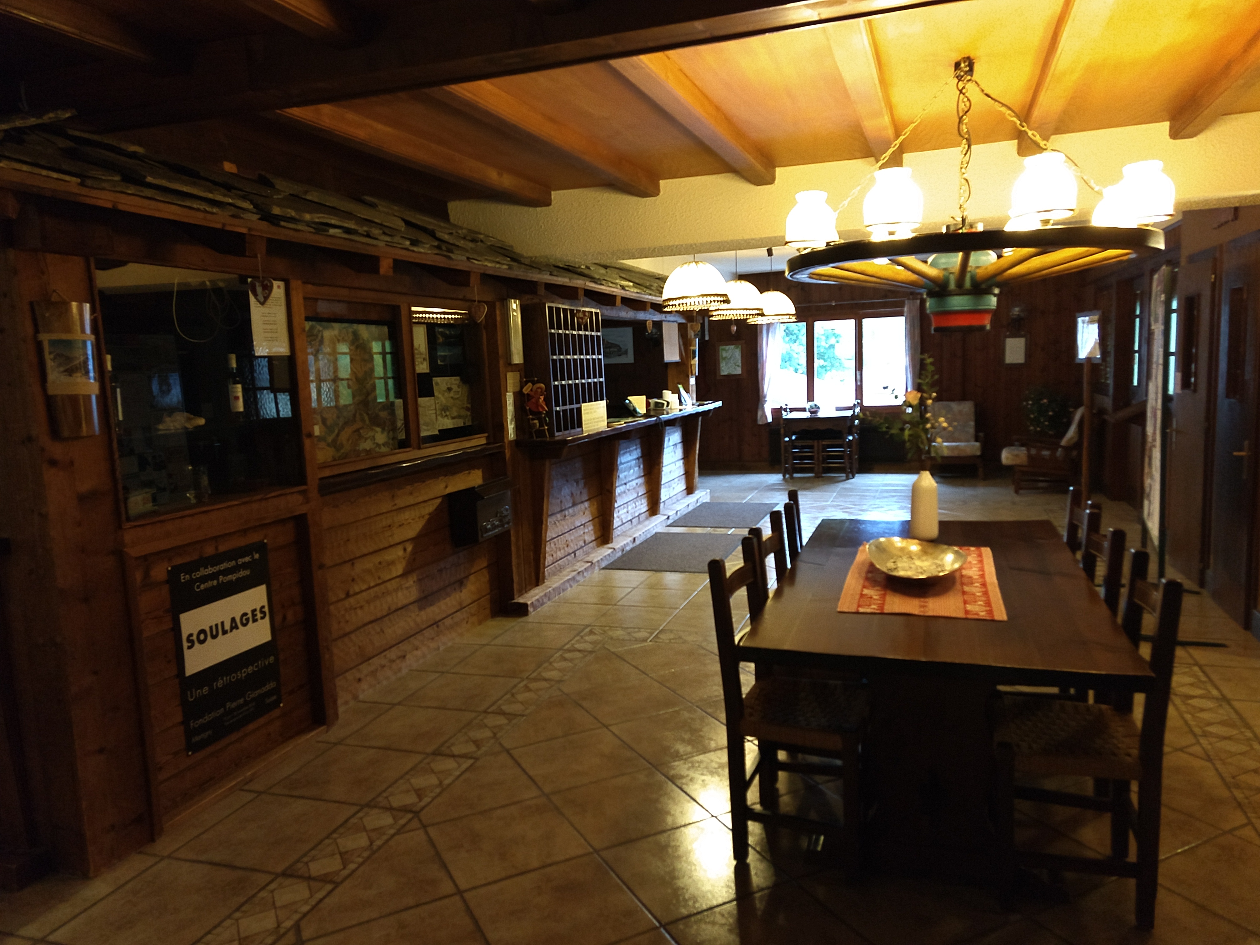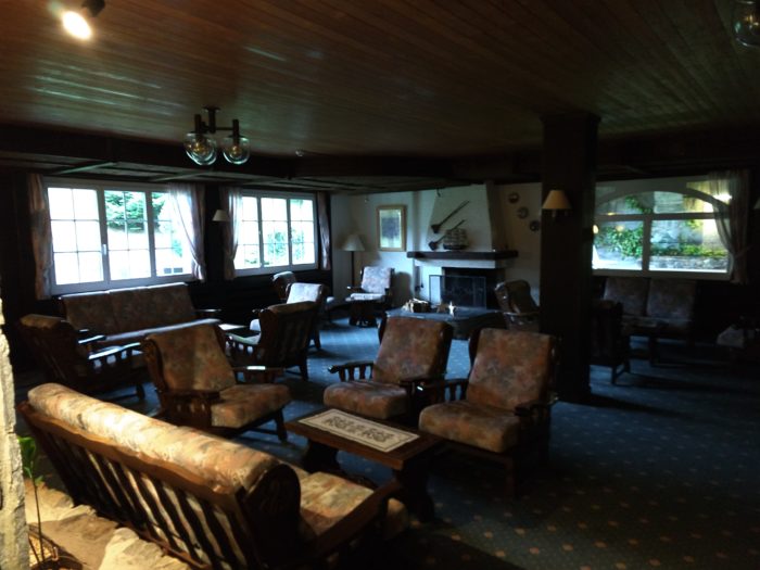 Just one of the gathering rooms.  – I am pretty sure that is an ax over the fireplace.